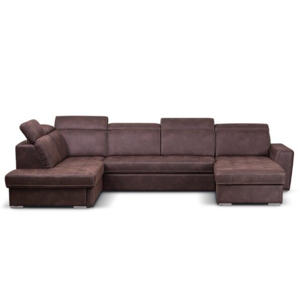 Sedací souprava do U s úložným prostorem a funkcí rozkladu. Vnitřní konstrukce je tvořena z pevného bukového rámu. Možnost objednání v různých ropzměrech i typech čalounění (včetně kůže). Pokud máte zájem o jiný rozměr či odstín polstrování, doporučujeme navštívit naši kamennou prodejnu, kde Vám sestavíme individuální nabídku.